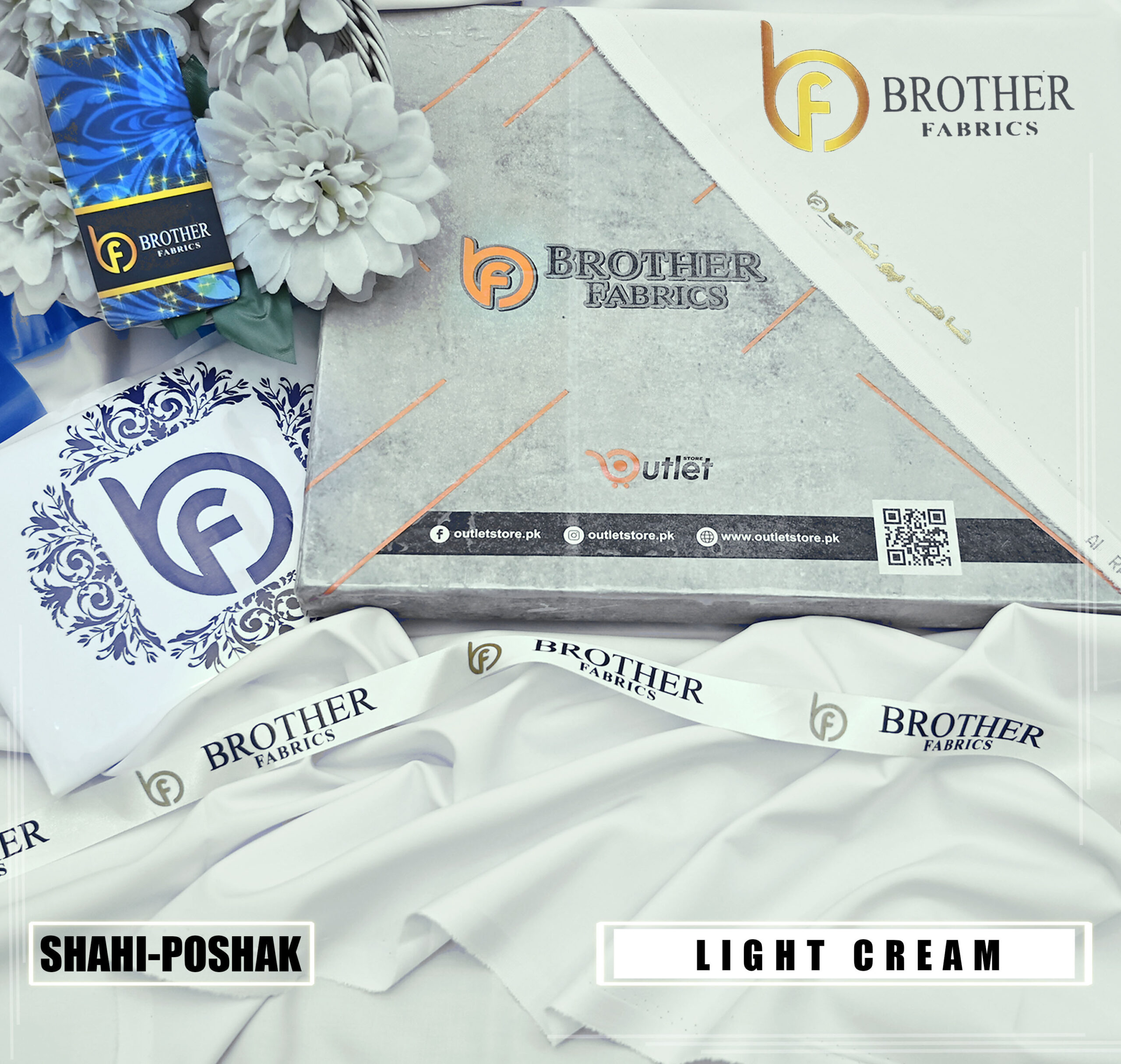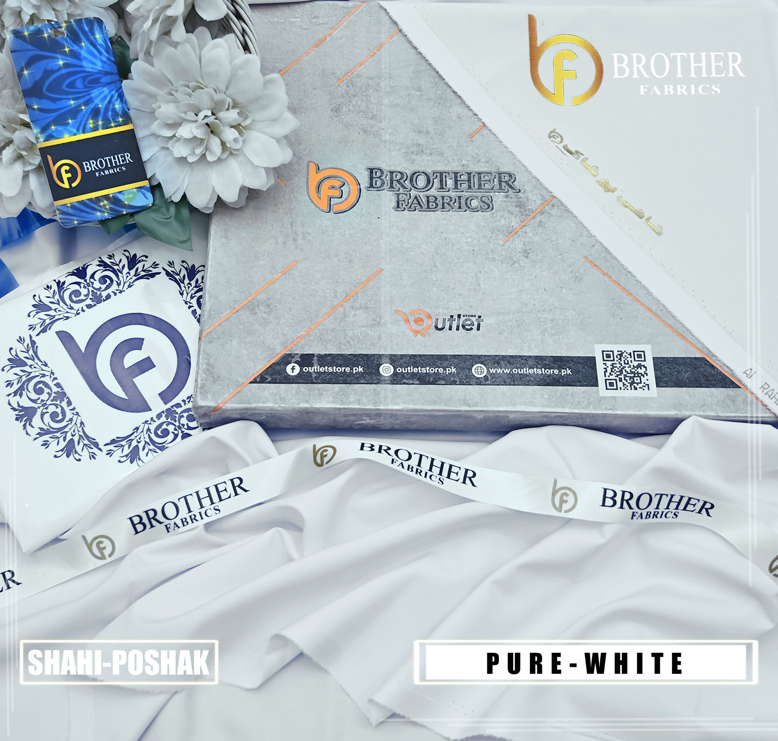 Brand: Brother Fabrics Cutting: 4 Mtr Standard Suit Material: Premium Wash & Wear Fabric Style: Unstitched Gents Suit Available Colors: 14 (Choose Your Favorite) Packaging: Box Pack Included Delivery: Free Home Delivery Across Pakistan Care Instructions: Easy Wash & Wear, No Iron Required